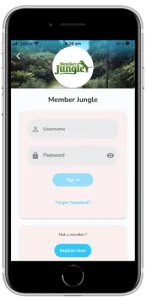 The first thing you need to do is download the mobile app onto your device. Select which device you have and click on the icon below and download the “Member Jungle” app.